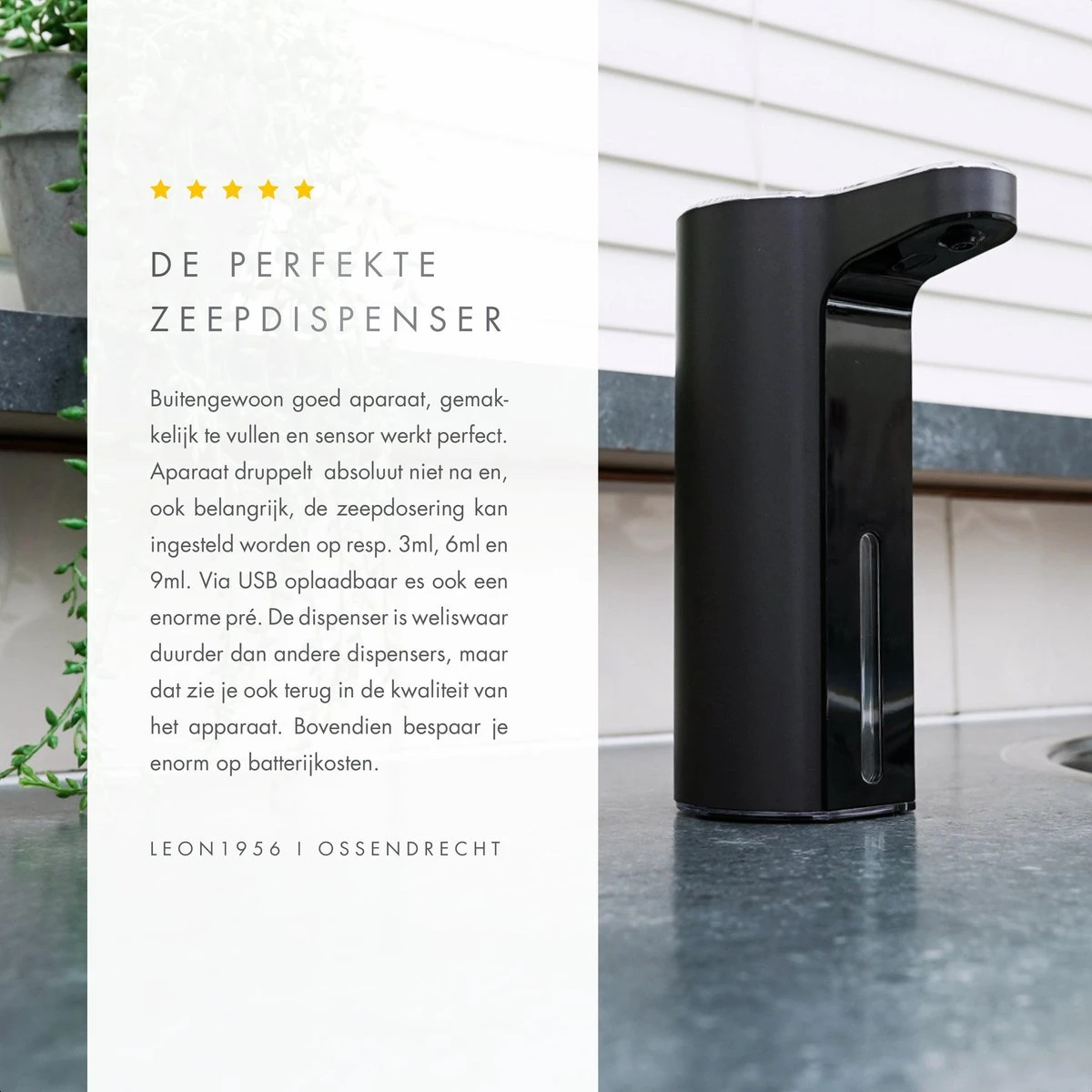 Onze pomp biedt de efficiënste manier om je handen te wassen, zonder dat er bacteriën of vuil achter blijven. De zeepdispenser is een stijlvolle en handige oplossing voor hygiënisch handen wassen. Tevens is de dispenser is volledig oplaadbaar met de meegeleverde USB-kabel, waardoor je nooit meer batterijen hoeft aan te schaffen. Kortom; een echte eyecatcher in de moderne leefomgeving door zijn stijlvolle en moderne design die jarenlang mee gaat.