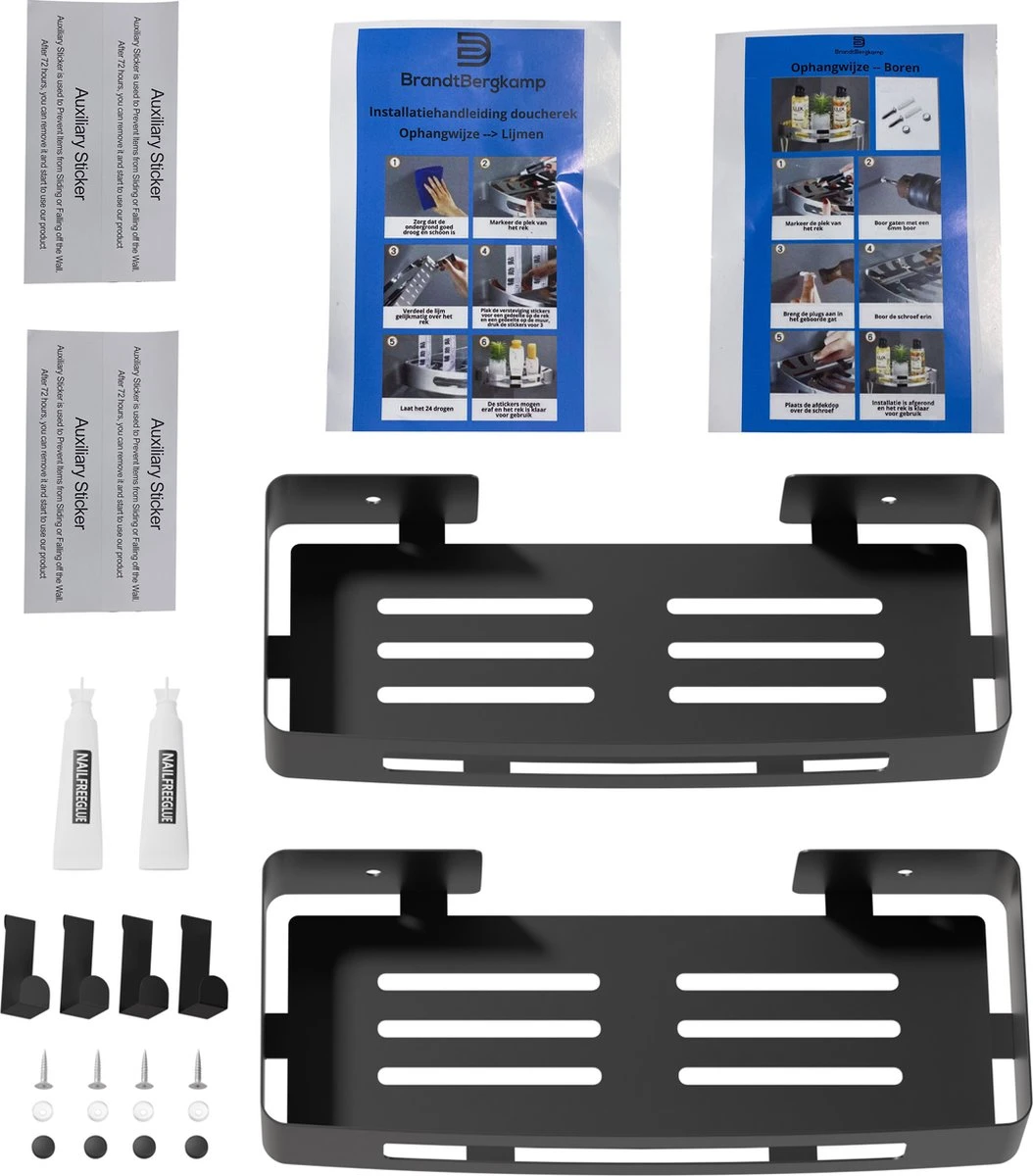 Met het zelfklevende doucherekje van Brandtbergkamp is dit verleden tijd. Dit 2-laagse doucherekje is voorzien van sterke power lijm waarmee u het doucherekje overal in de hoek van uw badkamer kunt plaatsen, zonder hiervoor gaten in de muur te hoeven boren. (ps dit kan wel als u dat wilt, de plugjes en schroeven worden ook meegeleverd).