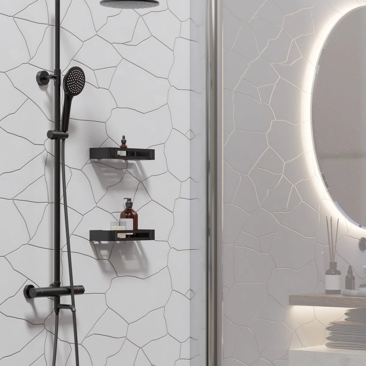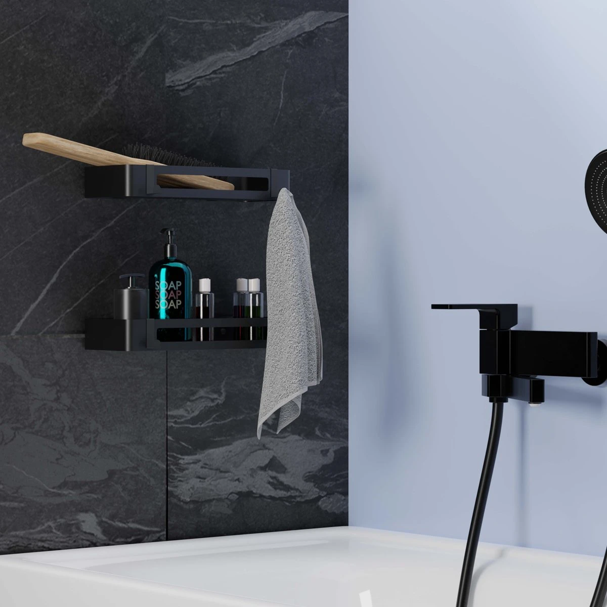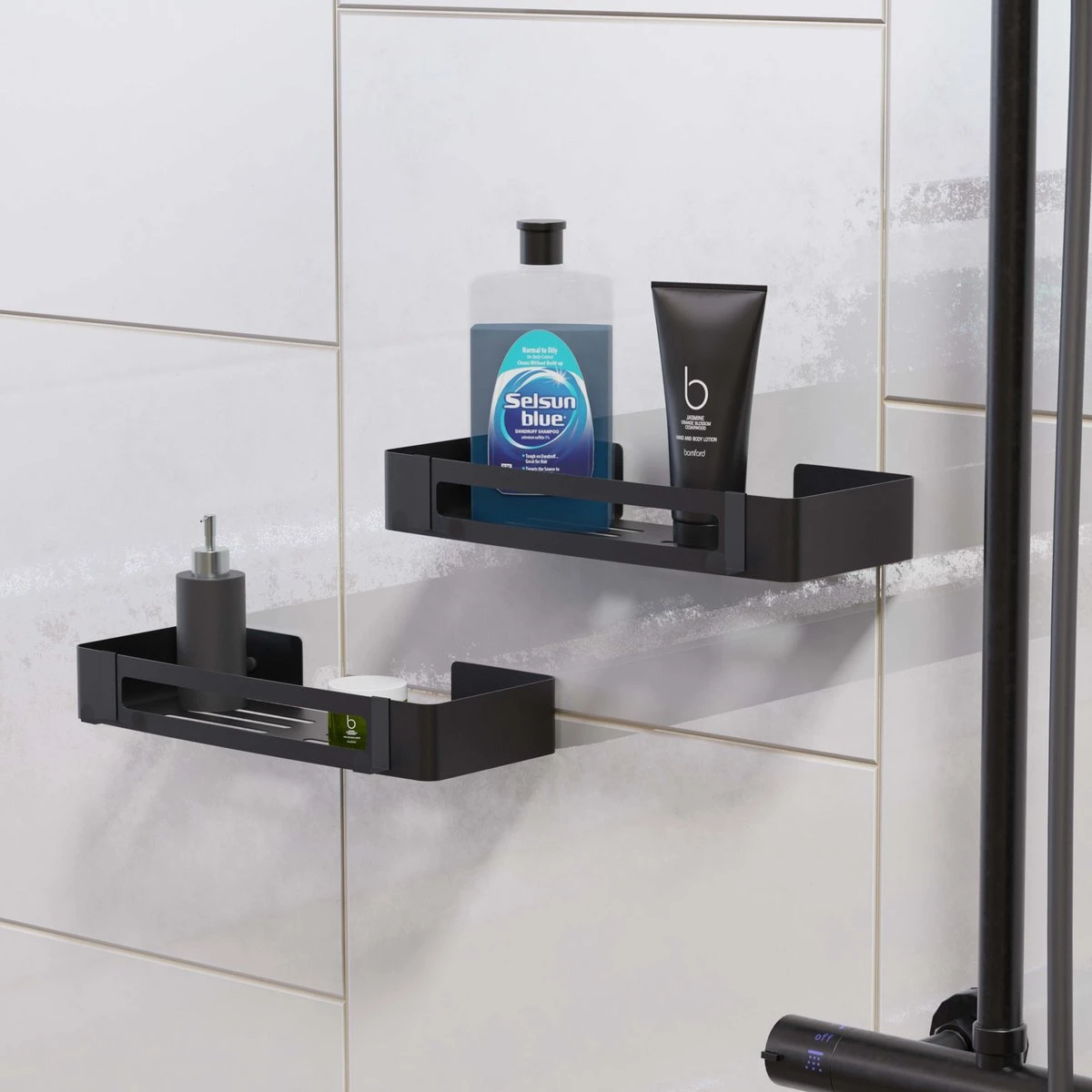 Door de matte afwerking en de zwarte kleur past het doucherekje thuis in elke badkamer. De drie etages bieden u meer dan genoeg ruimte om al u doucheartikelen te stallen, wat zorgt voor een opgeruimde uitstraling van uw badkamer.
