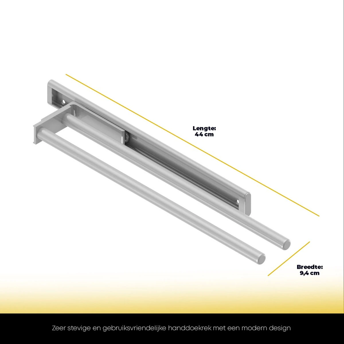 Eleganca Handdoekrek – Handdoekhouder Keuken – Handdoekstang – Ideaal Voor In Keukenkastjes – 44cm Uittrekbaar – 2 Armen – Handdoekrek Badkamer – Inclusief Bevestigingsmateriaal – Hoge Kwaliteit Aluminium – Zilver
