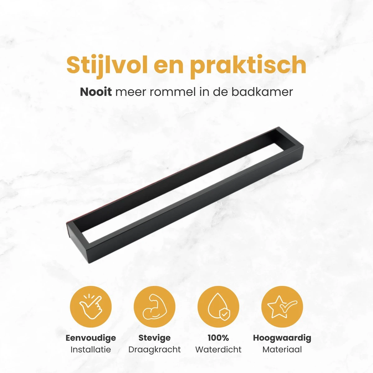 Geen boorgaten in de muur? Dan is de zelfklevende handdoekrek de ideale oplossing. Het stijlvolle handdoekrek is in RVS uitgevoerd en heeft een zeer moderne en minimalistisch design. De handdoekrek wordt met een 3M plakstrip. Ideaal voor de niet-klussers. Het is super voor zowel de badkamer of de keuken!