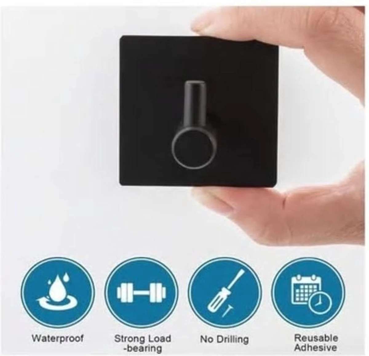 RVS Handdoek haak set vierkant zwart wandhaak zelfklevend zonder Boren, geen beschadiging van muur of glas.