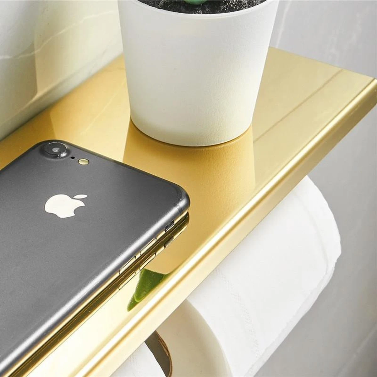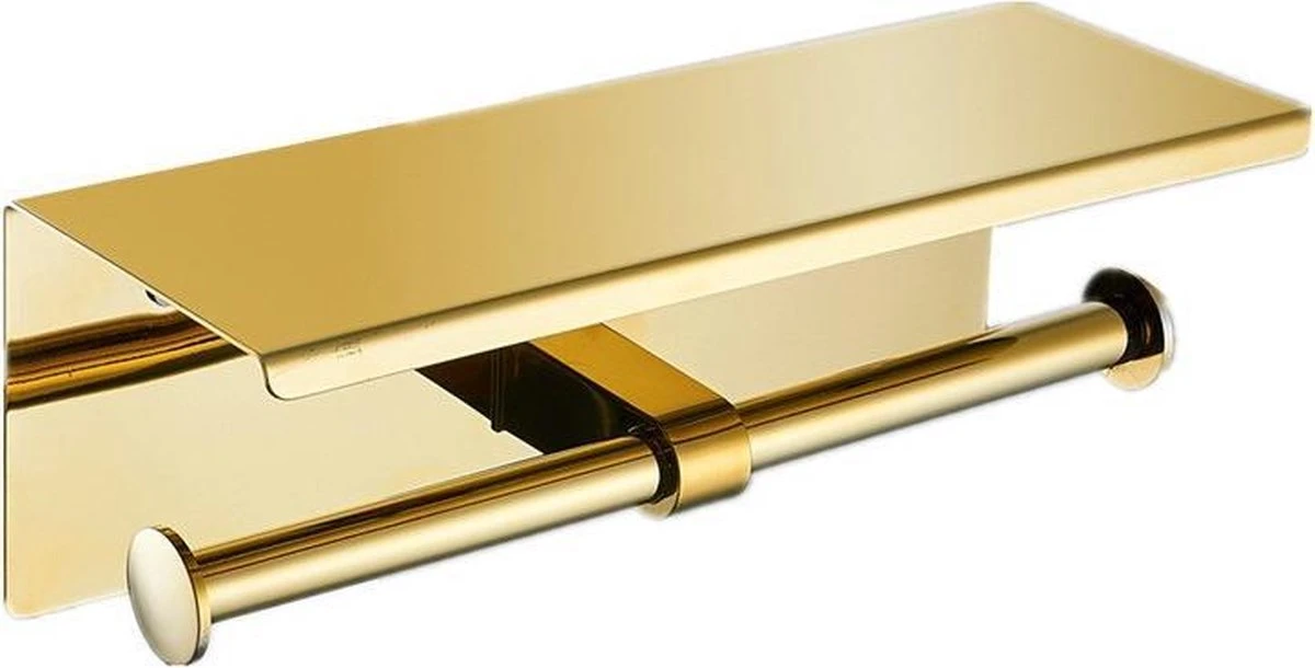 Merkloos TDR – Dubbele Toiletrol Houder – RVS – Met Geïntegreerd Goudkleurig Plankje / Planchet