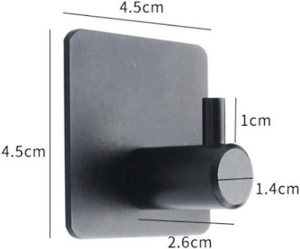 Deze luxe zelfklevende RVS-plakhaakjes zijn een aanwinst voor iedere keuken, badkamer en slaapkamer. Uiteraard zijn de haakjes ook te gebruiken om kleding aan op te hangen. De haakjes hebben een afmeting van 4,5 x 4,5 x 2,6 cm. Boren is niet nodig en het kost u maar een halve minuut om ze op te hangen.