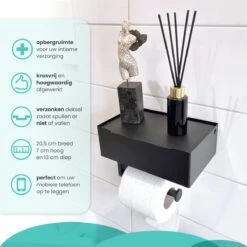 Een speciaal ontworpen Toiletrolhouder gecombineerd met een planchet voor jouw mobiele telefoon.