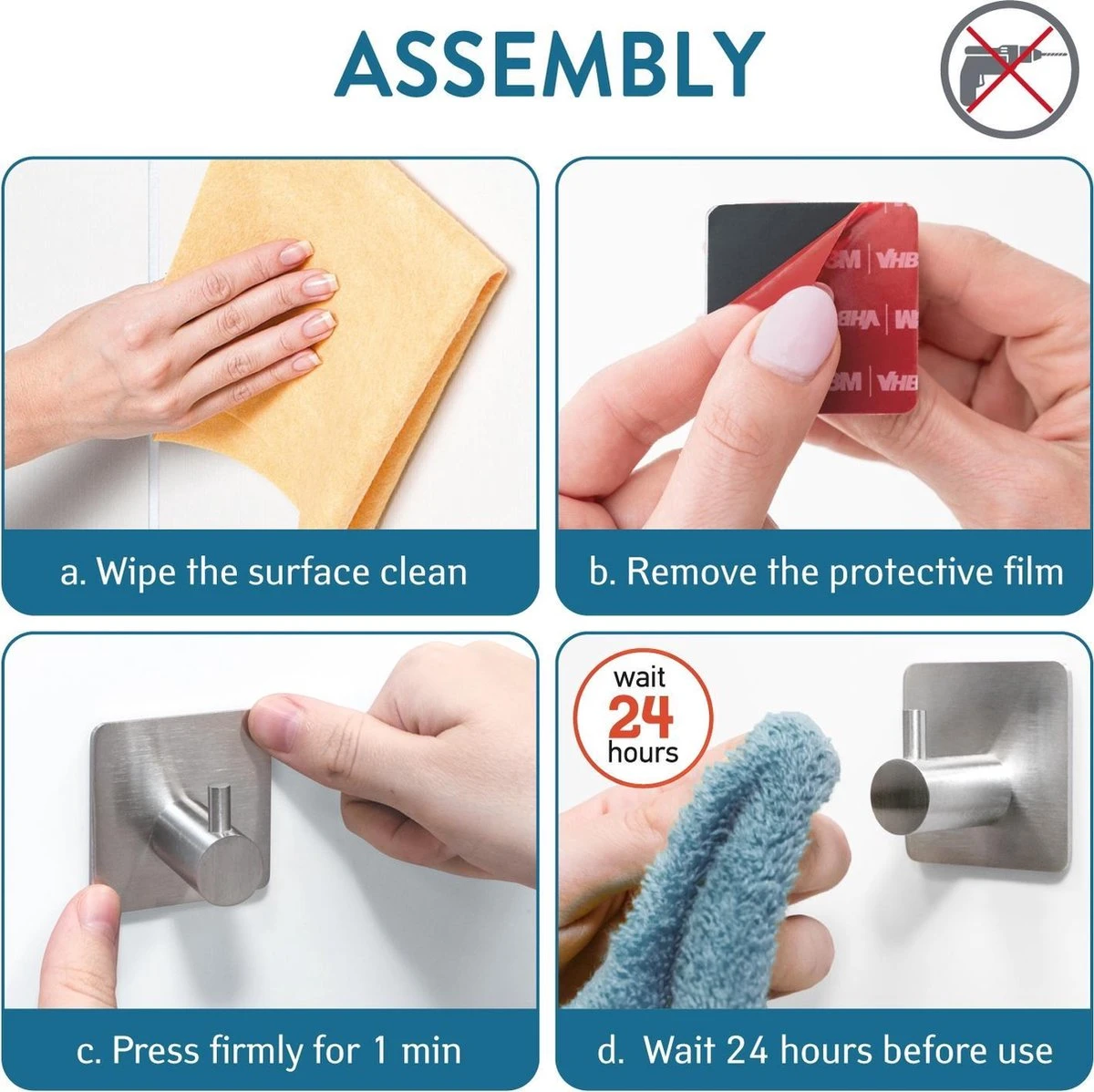 ✔ Geschikt voor iedere vlakke ondergrond; deur, hout, glas, spiegel, wand, kast, tegels etc!