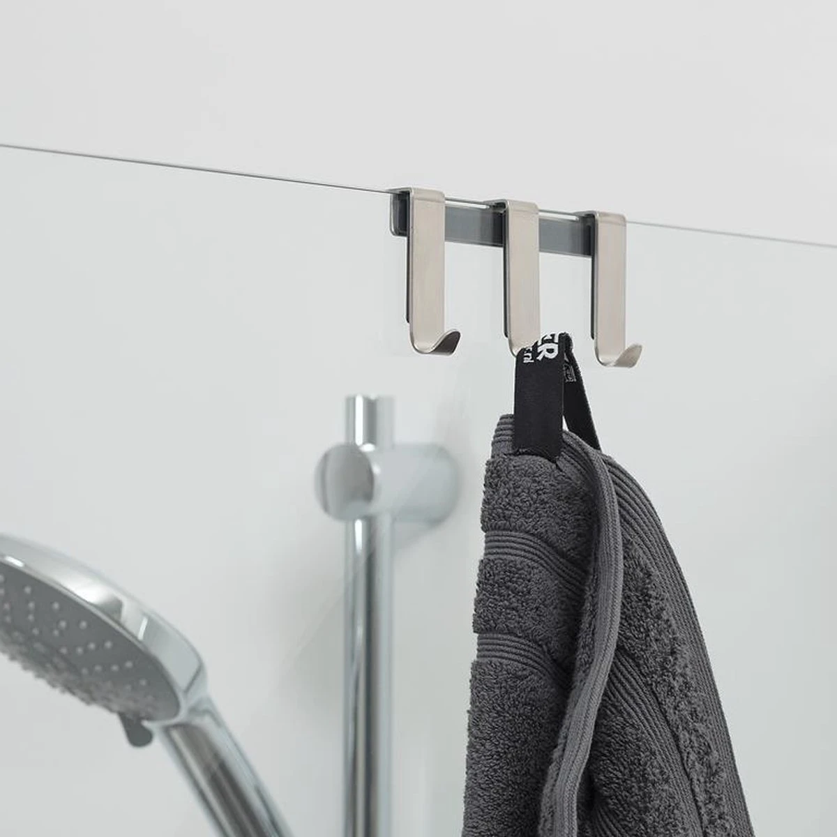 • De glashaak kan eenvoudig over douchedeuren en glaspanelen gemonteerd worden
