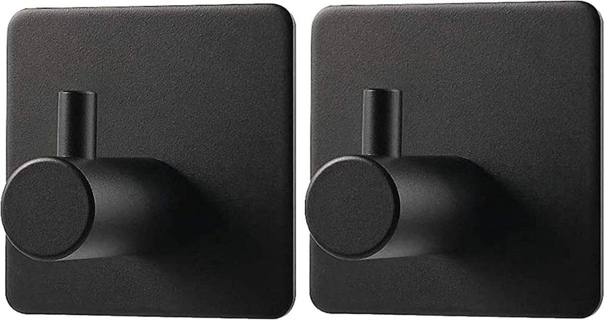 - 2 Vierkante Zelfklevende Handdoekhaakjes – Zwart