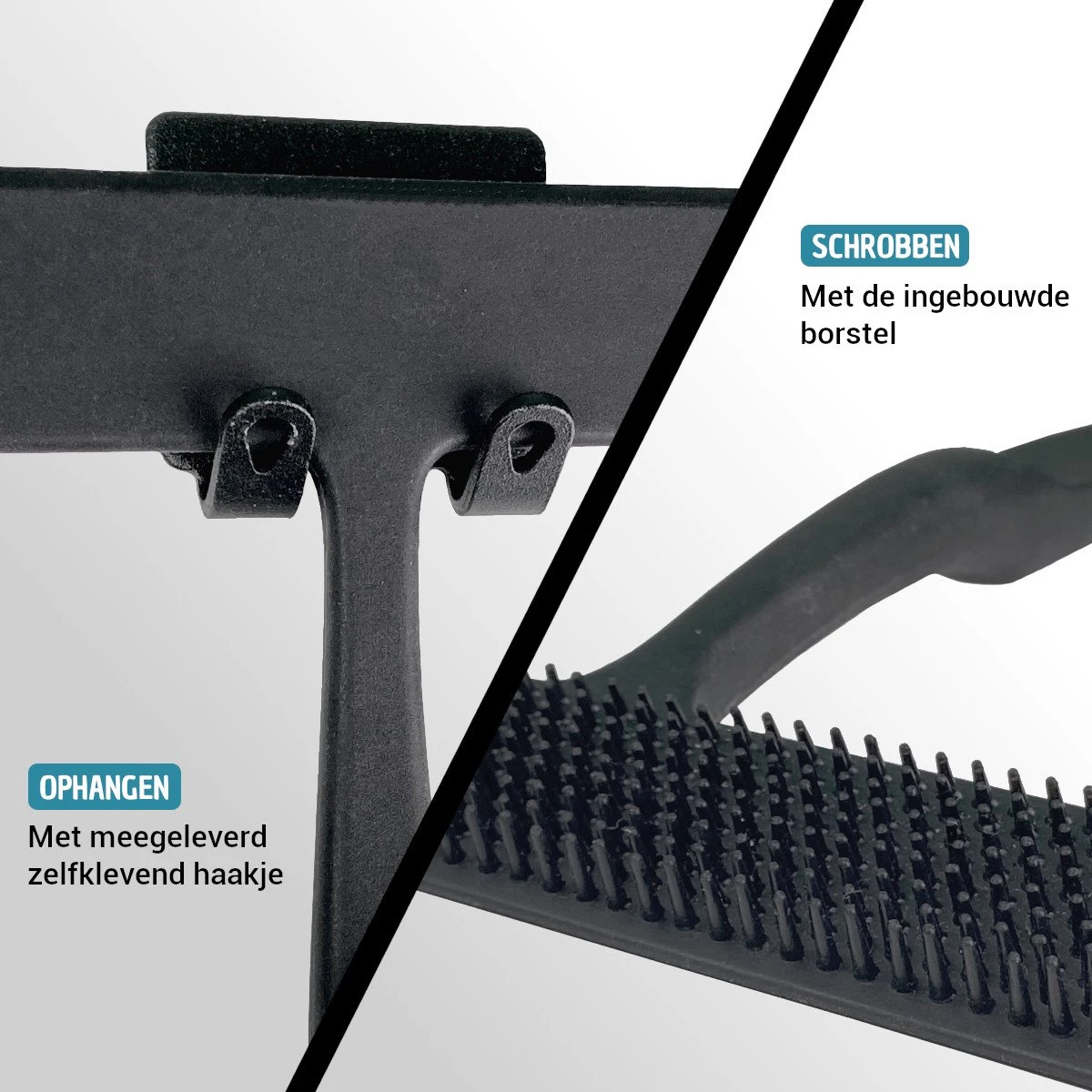Na gebruik kun je deze wisser eenvoudig opbergen door deze op te hangen aan de meegeleverde ophanghaak. De ophanghaak is gemaakt van roestvaststaal en daardoor geschikt voor natte ruimtes. De zelfklevende folie plakt zowel op tegels, hout, beton als glas en kan dus vrijwel overal in huis worden opgehangen: aan de douchewand, aan het wasmeubels, op de muur of aan de binnenkant van een kastje.