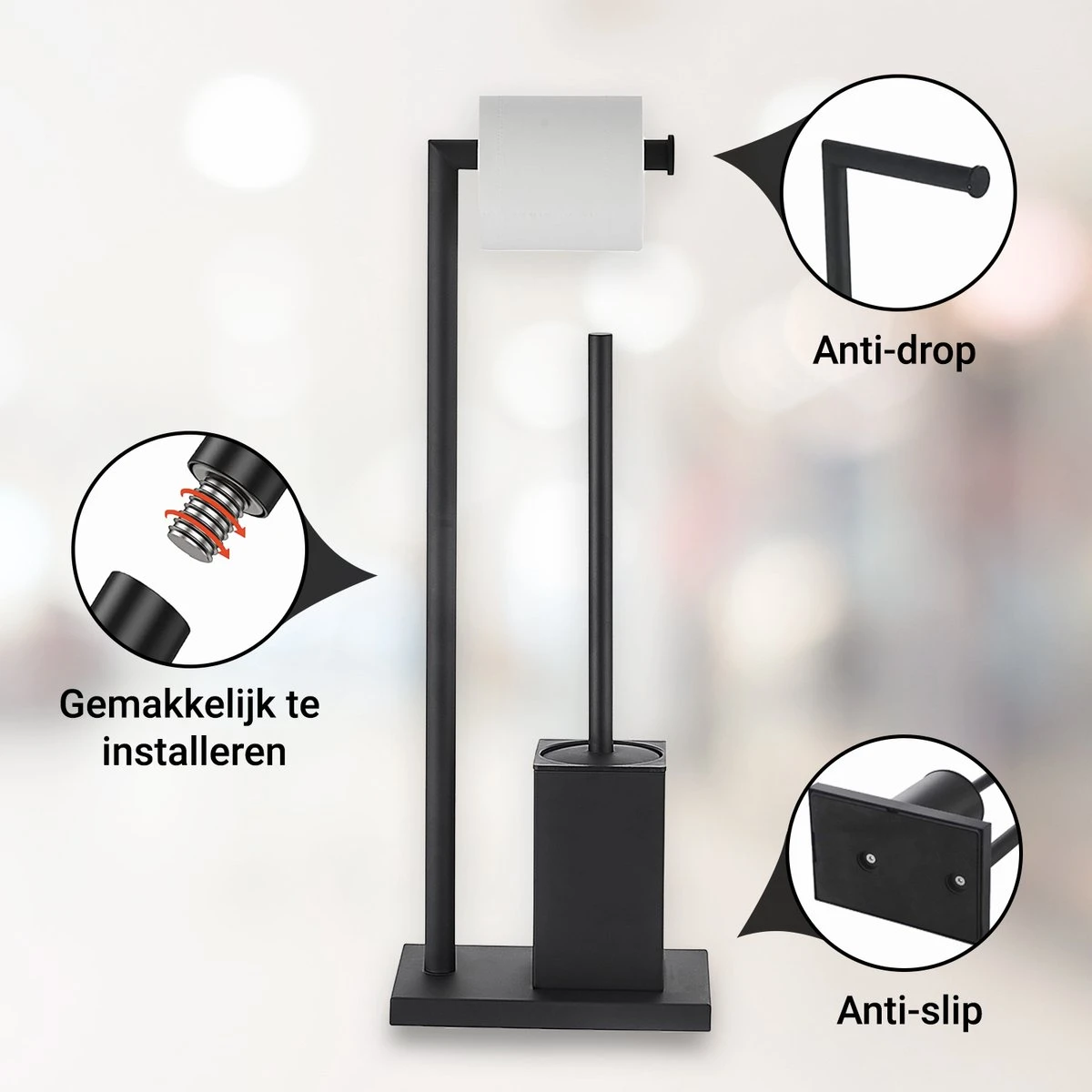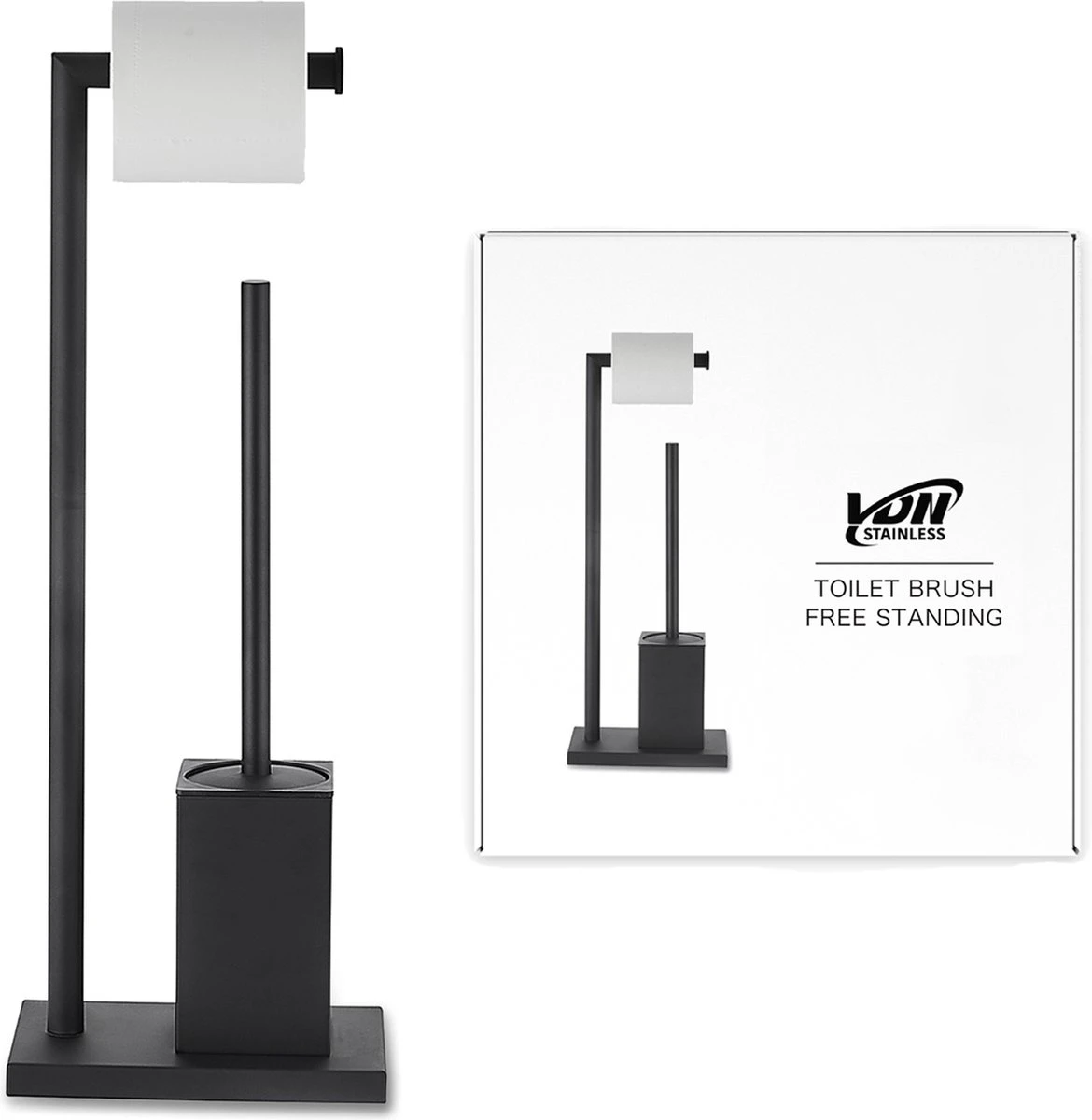 Deze wc- en toiletborstelhouder is niet alleen stijlvol maar ook praktisch in gebruik door haar 2 in 1 functie. De houder is gemaakt van hoogwaardig roestvrij staal en is zwart van kleur. De houder is tevens een toiletborstelhouder als een wc-rolhouder. Maak je toilet compleet met deze mooie set van VDN Stainless.