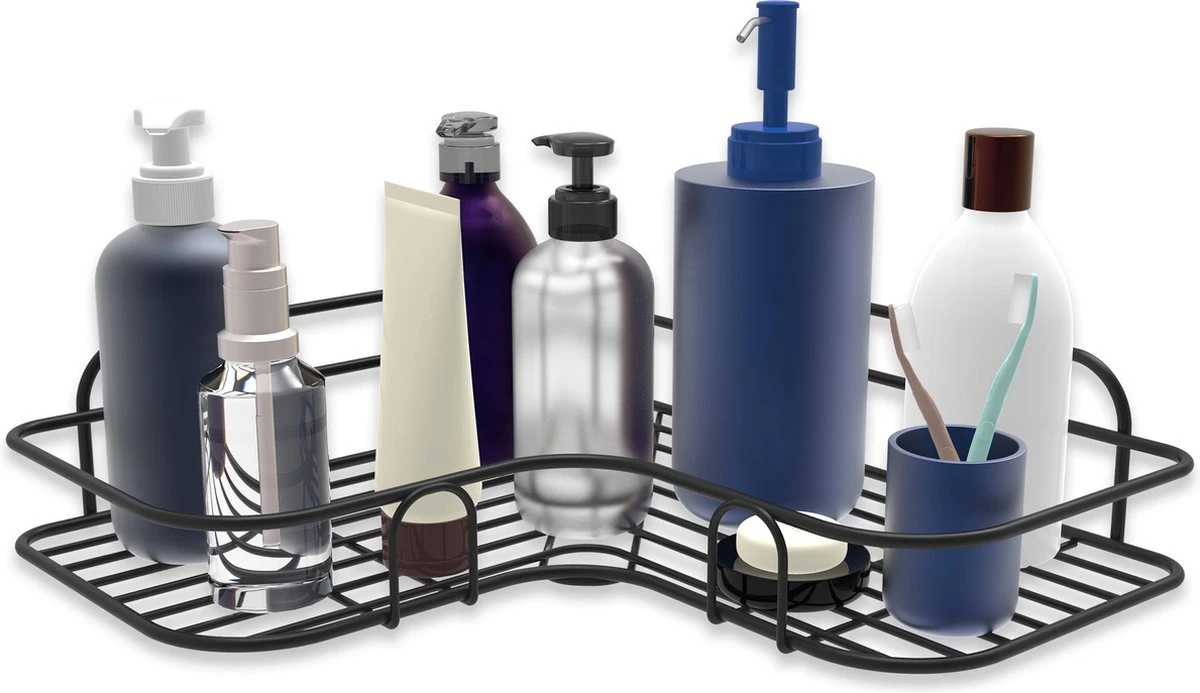 Ben je op zoek naar een handig doucherek waar je de rondslingerende shampooflessen en zeepjes op kwijt kan? Het zelfklevende doucherek van Via Fectio® is makkelijk te monteren en stijlvol in elke badkamer. Met het mat zwarte design van het roestvrijstalen doucherek doet het zeker geen afbreuk aan je badkamer. Ruim gemakkelijk al je shampooflessen, zeepjes en andere douche accessoires op in dit zelfklevend doucherek!