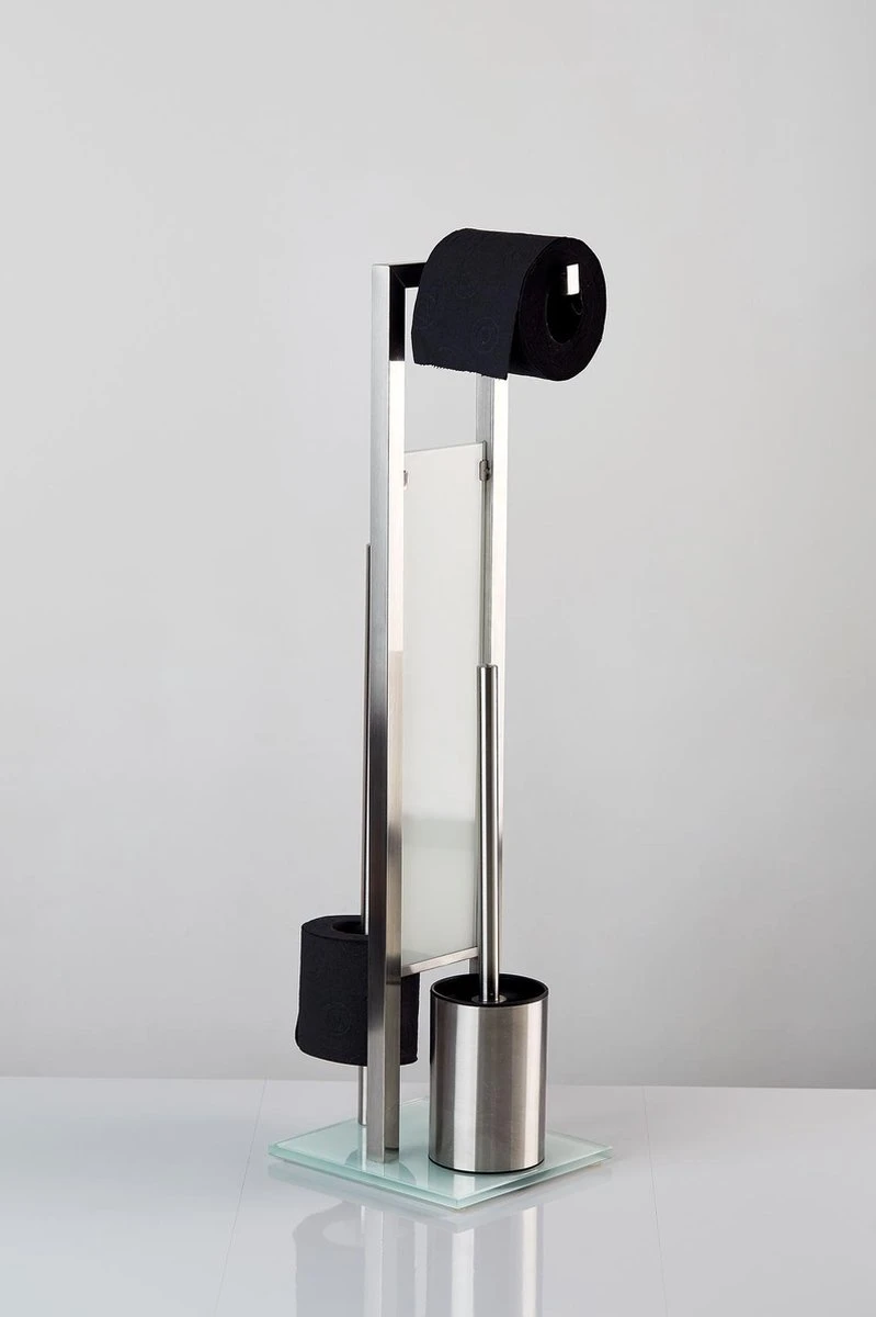 Met de hoogwaardige toiletbutler Rivalta van mat rvs gecombineerd met wit, gehard glas creëert u decoratieve designaccenten op de badkamer en het toilet.